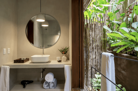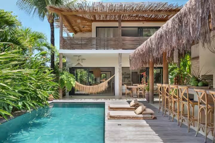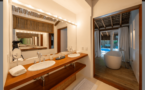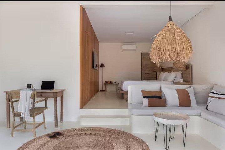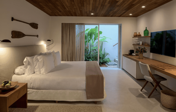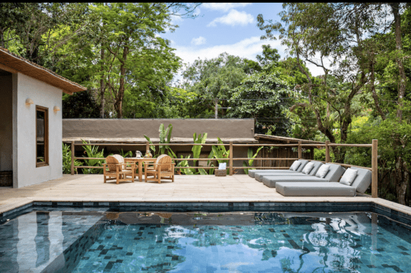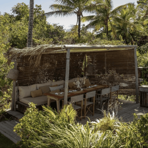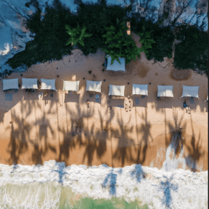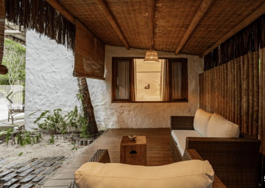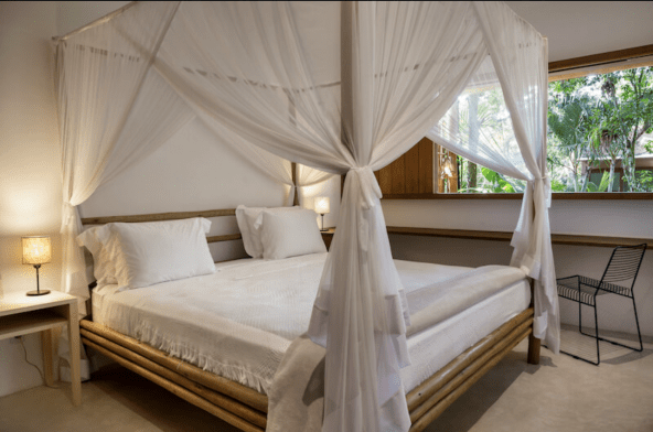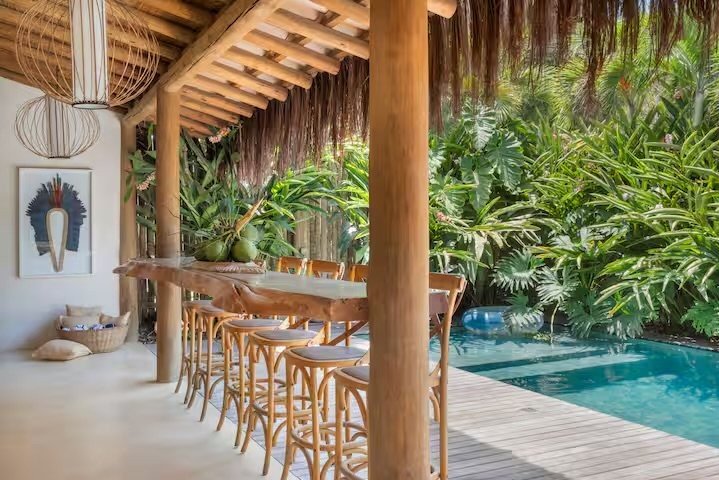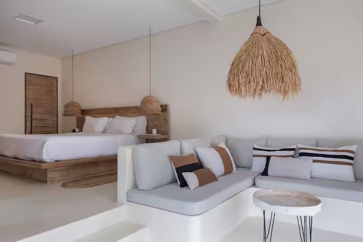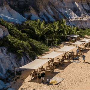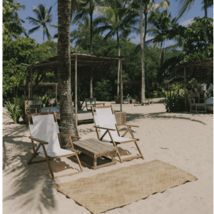 O Almar é uma das experiências mais completas de praia em Trancoso, combinando conforto, boa gastronomia e um ambiente elegante, sem excessos na Praia dos Coqueiros. A estrutura é ampla e bem distribuída, com bangalôs e daybeds para quem busca mais privacidade, além de cadeiras e esteiras com bastante espaço entre si.