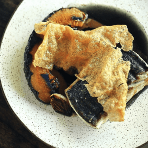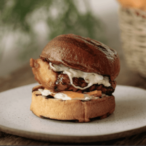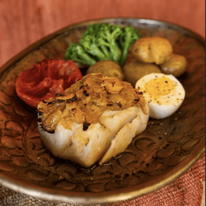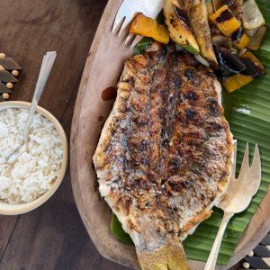 A cozinha tem como essência o fogo — tudo é preparado na brasa — com uma proposta contemporânea que valoriza ingredientes frescos e sabores autênticos. Carnes, peixes e vegetais ganham protagonismo em preparos precisos, com identidade e profundidade de sabor.