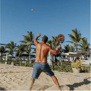 Para quem gosta de se movimentar, o beach club oferece opções como beach tênis, futmesa e caiaque, tornando o dia mais dinâmico sem perder o clima relaxado.